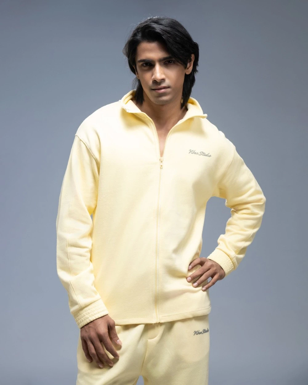 Pastel Yellow Funnel Neck Jacket